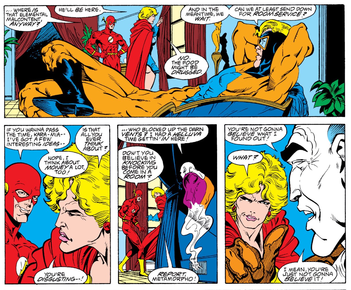 Looking at the roster, the characters stand out as both choices of the writers and “hot properties” that were incorporated for sales reasons. Animal Man was a year into his incredibly popular run by Grant Morrison which explains his addition. The Flash, now Wally West picking up the mantle of his deceased mentor Barry Allen, was holding down the fort in his title was a classic member to have on the roster. Wonder Woman had been given a full reboot by George Perez and was another high profile character to have on board. This left the characters Giffen & DeMatteis wanted which was bringing Captain Atom and Rocket Red over from JLI while adding on Elongated Man, Power Girl, and Metamorpho. Just like JLI, these are not household names, but for fans and the writers, they are fun deep cuts into the universe.