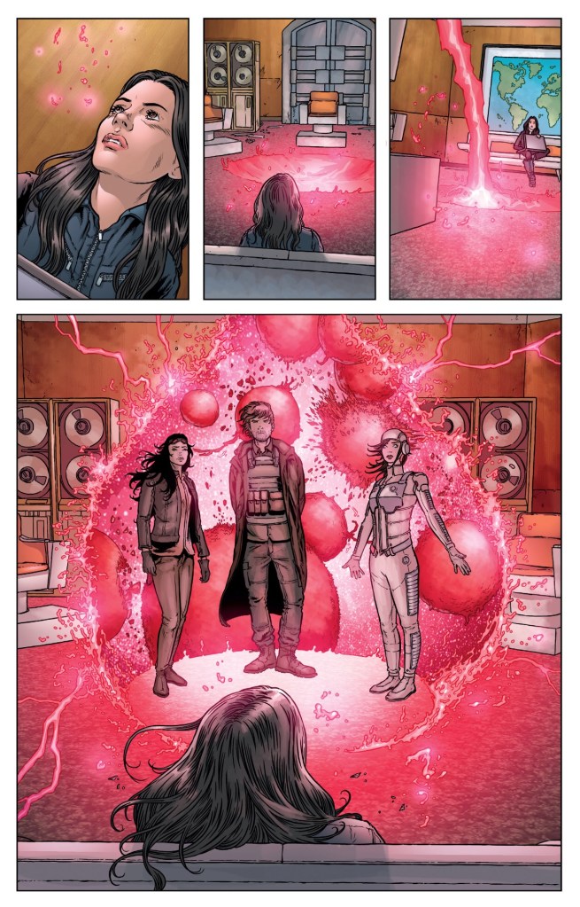 Ellis chose to make Angela Spica our entry point into The Wild Storm. Spica is a medical engineer for International Operations (IO), the organization that essentially runs every government and industry on Earth. Well, except for the Halo Corporation which is run by the mysterious Jacob Marlowe. Spica happens upon an assassination attempt by IO on Marlowe during which she manifests a new form. As a result of her job, Spica has gotten access to alien technology stolen from Skywatch, the org that governs everything beyond Earth, and has merged this tech with her own body. Using these new powers, she saves Marlowe and begins an odyssey that reveals the real history of Earth and who the authorities are behind our lives.
