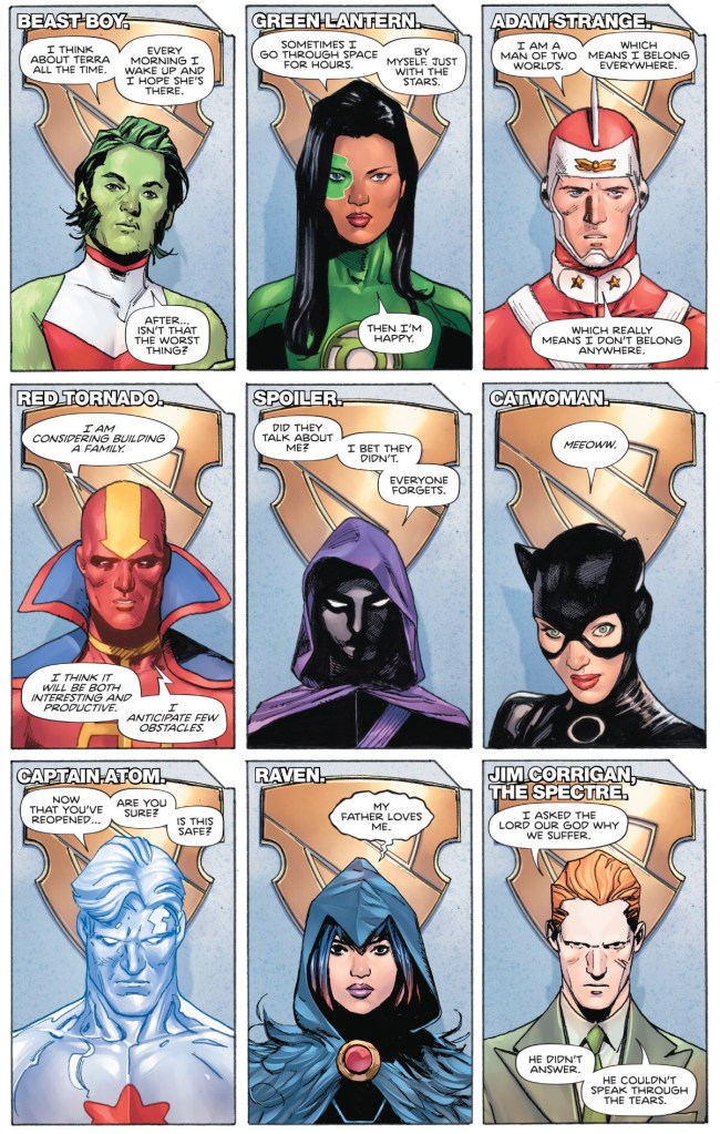 My favorite part of these nine issues where the snippets of confessionals from superheroes. As part of the treatment going at Sanctuary, patients talk to a camera where they work out some of the issues that have come out of this chaotic lifestyle. King spotlights characters who have been ignored for higher tier heroes, giving us some insight into Gnnarrk, Lagoon Boy, Arsenal, and more. This isn’t a crisis where realities are threatened, and alternate Earths are colliding with our own. This is a crisis of human proportions, and King wants to know what do heroes do when it all becomes too much for them. The burden of saving the world is crippling, and when a hero inevitably can’t stand up to the pressure, who helps them continue on?