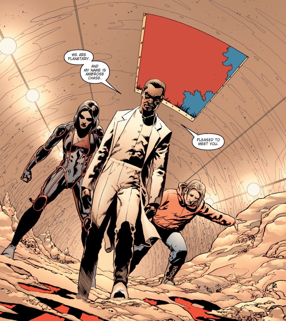 The first issue of Planetary is probably one of the best tone-setting comics I’ve ever read. In its pages, we get the recruiting of Elijah Snow as well as his first case that takes the team to a strange lair hidden away in the Adirondack Mountains. Ellis almost begins our journey with a chronological start point for superhero comics, a visit with one of the pulp heroes of the Wildstorm universe. Planetary finds Axel Brass, an analog for the classic Doc Savage character, himself an inspiration for a long line of super-intelligent & strong masked heroes (see Batman, Reed Richards, Iron Man, etc.). Brass has spent the past fifty-plus years guardian the Snowflake a rift in space-time he and his cohorts of the era created as a means to reach out across the Multiverse.