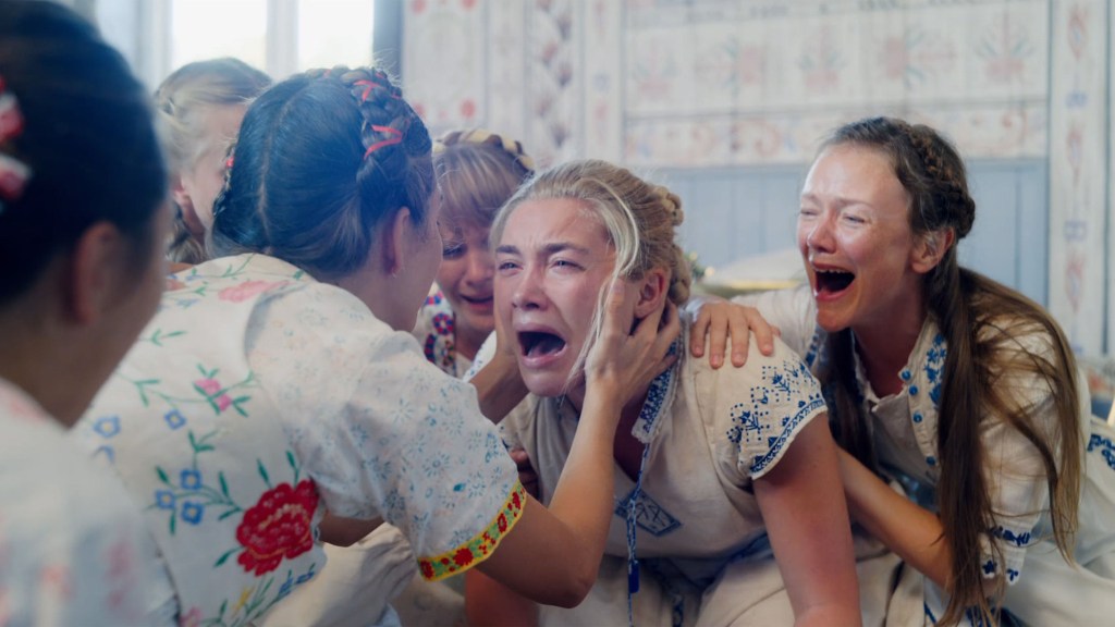 Florence Pugh is a shining point of light in a blazingly gorgeous picture, bringing deep emotions out of her character that causes her turmoil to resonate with the audience. The first ten minutes of the film set up the inciting tragedy and doesn’t get explored in much depth; instead, the story focuses on the emotional aftermath on Dani. There are striking and unsettling visuals in this opening, and Aster revisits those images later in the film as our protagonist is influenced by her new environment and the intoxicants being given to her. The final images of the picture focus solely on Pugh, and it is one of the most visually stunning moments I’ve seen in a film in a while, rivaling the conclusion of Hereditary.