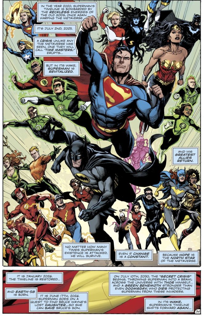 The seeds of this change have already been planted in the pages of Wonder Woman #750, where she is established as the first superhero in the DC Universe. In the final pages of that issue, we flashback to the 1930s, where Alan Scott (who becomes the first Green Lantern) sees a newsreel reporting about Wonder Woman, and it is implied she will be the inspiration for the heroes who become the Justice Society of America during World War II.