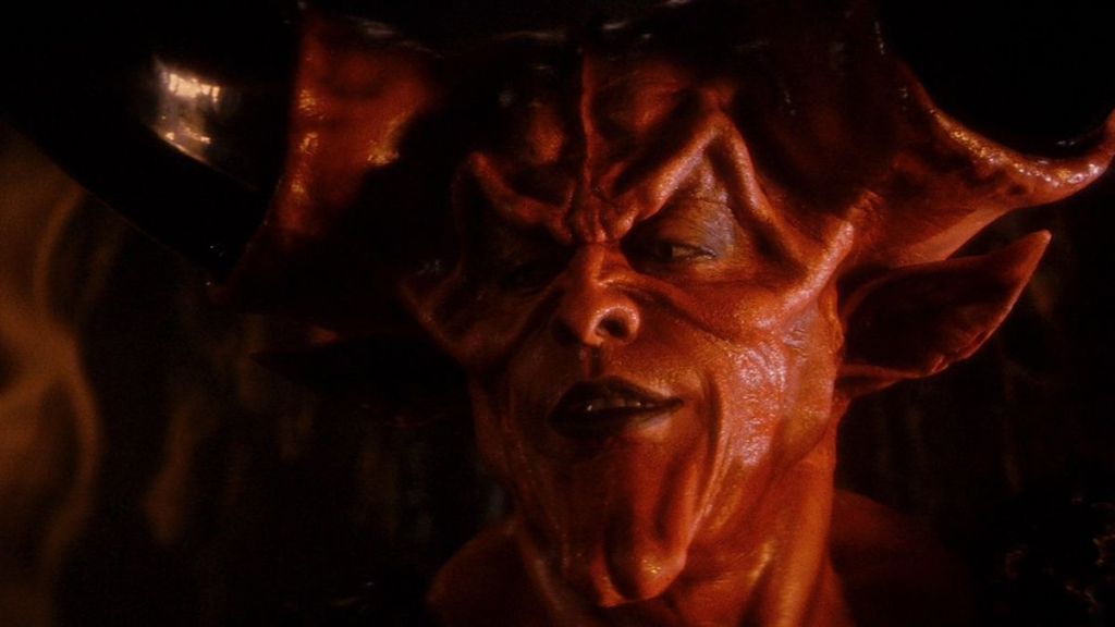 From my review: Rob Bottin handled makeup design and the variety of magical beings, both angelic and sinister, look wonderful. The obvious crowning achievement of the film is Tim Curry as Darkness. This is the definitive Devil. Massive black horns, piercing cat’s eyes, brilliant white fangs in a malevolent grin, goats hooves that tower him above the rest of the cast. Just from an engineering point of view, this is a massive task. Bottin made his way up on some classic 1970s cheesy films (King Kong, Rock & Roll High School), but really broke out through his work with John Carpenter (The Fog, The Thing) and particularly The Howling. The most important part about his transformative work with Darkness, and the testament to Tim Curry’s prowess as an actor, is that neither the makeup or the actor ever overwhelm each other. It’s such a perfect synthesis of both crafts.