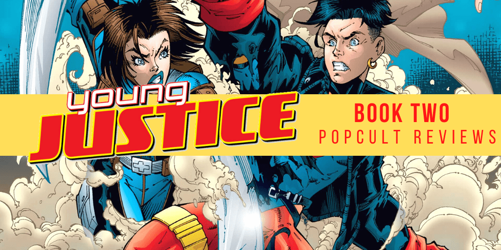 There’s a brief interlude that has the original trio, Robin, Superboy, and Impulse trekking to Gotham City during the No Man’s Land storyline in Batman, yet another confusing point for anyone who doesn’t know what was happening with that massive arc. The rest of the collection is focused on building up the Sins of Youth story that kicks off in Book Three by introducing Old Justice, a team of Golden Age sidekicks who are now elderly and advocating against letting minors fight crime. This is spurred on by Arrowette’s attempted murder of a criminal that has become an issue of congressional inquiry. This is where things begin to interesting, but the story is cut off by a one-shot that has Young Justice fighting Bedlam, the genie from the origin story of the team.