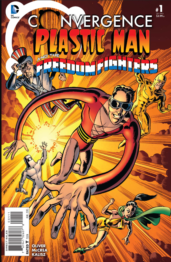 Plastic Man was a part of Earth-X, one of many realities in the Multiverse. This universe followed an alternate timeline where the Axis Powers won World War II, and the United States was split down the middle. The eastern half under Nazi control, and the western by the Japanese. The Freedom Fighters were formed, American heroes who operated in secret. These were all character brought over from Quality, including Plastic Man. He also appeared as one of the random identities Robby Reed acquired with his Hero Dial in the pages of House of Mystery.