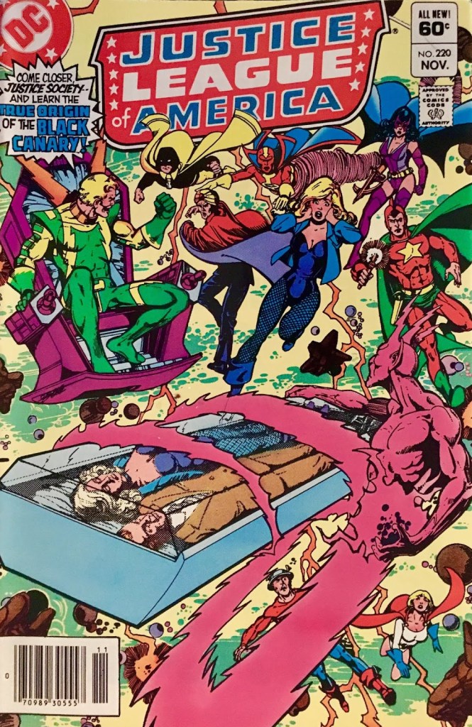 In the 1960s, there were numerous crossovers between the Justice League of Earth-1 and the Justice Society of Earth-2. During one of these events, they battled a creature named Aquarius that resulted in Larry Lance’s death saving Dinah. She was grief-stricken and crossed to Earth-1 to start a new life as a member of the JLA. This also began her romance with Green Arrow. During this time, Dinah developed a superpower, her “canary cry,” a sonic scream that could be weaponized. For twelve years, she was a regular presence on Earth-1 until 1983’s Justice League of America #219-220, where writer Roy Thomas (a legendary fan of the Golden Age characters) decided to tweak Black Canary’s identity.