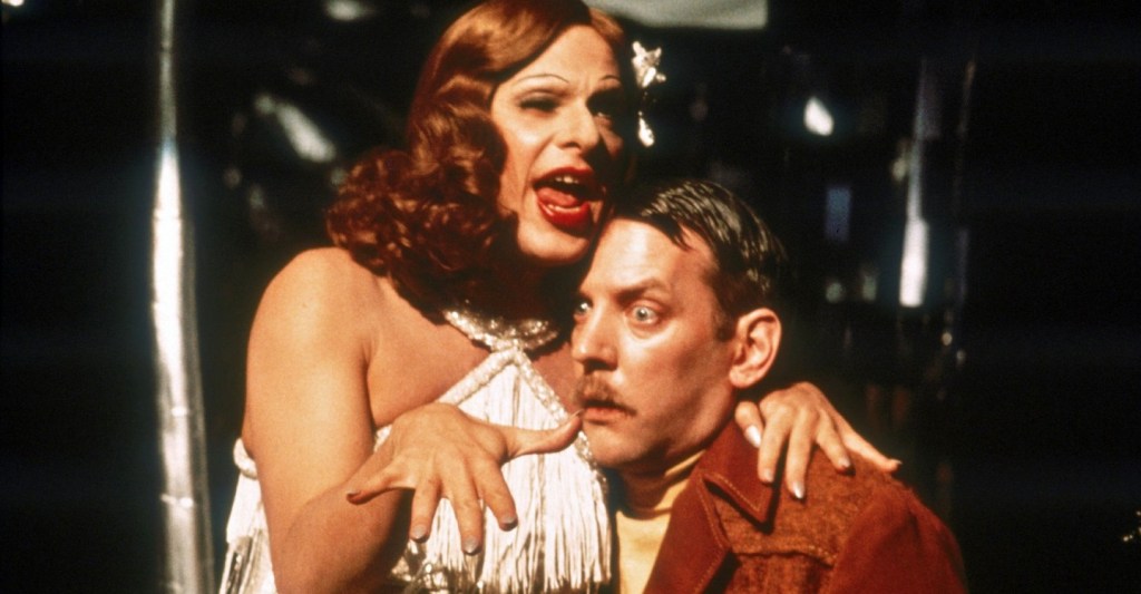 While Tod Hackett might be our protagonist, the core of the film rests with Homer Simpson (Donald Sutherland, the Simpsons tv character is named after him). Homer is a heartbreaking and frustrating character. We learn he has a complicated past with a dancer who left him. Religion plays a significant role in his life, as he takes Faye and her alcoholic father (Burgess Meredith) to a revival meeting. That scene, in particular, is interesting because Homer is joyously transfixed while Faye gives into the theatricality of the service. There are quite a few moments where the sacred is overtaken by the profane, and the gaudy spectacle of the revival is one of those. Homer is also sexually repressed, his nervous energy transferring into his hands, the knuckles continually cracking. Faye runs into the embrace of Homer because, as she tells Tod later, Homer expects nothing from her and worships her.