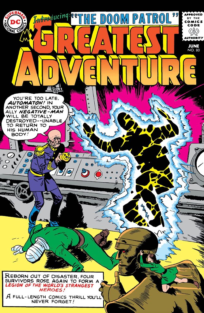 At first glance, Doom Patrol may appear to be an attempt by DC Comics to create an X-Men knock-off. Doom Patrol first appeared in the pages of My Greatest Adventure #80 (June 1963). This was an adventure anthology that evolved over time from pulp stories to science fiction to finally becoming the home of Doom Patrol. Over at Marvel, the X-Men debuted in the pages of their own title in September 1963. Now that doesn’t mean the X-Men are a rip-off of Doom Patrol either. Due to the writing and production schedules, both ideas were already in the works before either company was aware of the other. It’s just one of those strange coincidences.