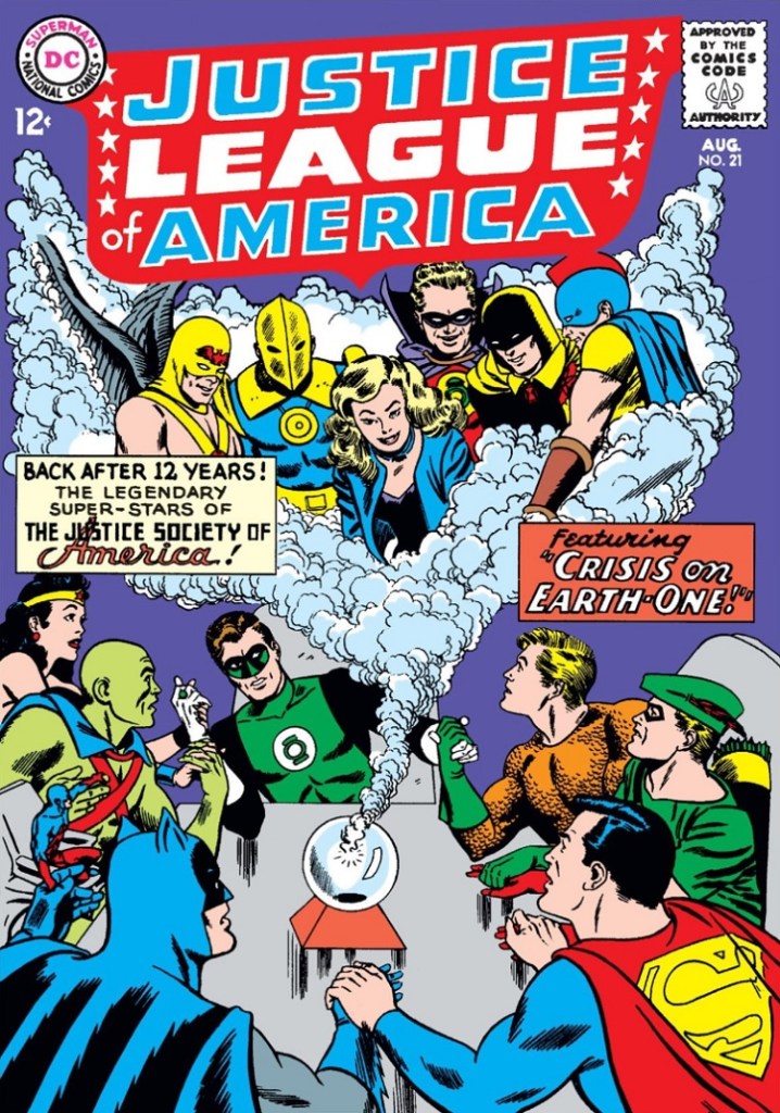 Worlds lived. Worlds died. And nothing was ever the same again. It began with The Flash #123 (Sept. 1961) when Barry Allen discovered another Earth vibrating at a slightly different frequency than his own. This was labeled Earth-2, and here he met Jay Garrick, the Golden Age Flash. Garrick had become the Flash in the 1940s; historically, he was the first to bear the name. However, Garrick was a fictional comic book character in Allen’s world, the character he took his name from. This team-up would lead to an annual event in the pages of Justice League of America where the team would cross worlds and help out their allies in the Justice Society combatting their mutual villains.