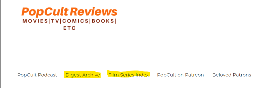 Also, I have added two new pages in the main header. One is a Digest Archive so you can look at the monthly collections I post in one spot. Additionally I have created a film series index so those can be perused more easily.