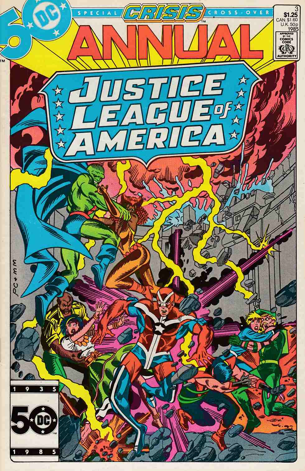 Reviewing stories found in Crisis on Infinite Earths #8, DC Comics Presents #88, Justice League of America Annual #3, Green Lantern #195, and Superman #415