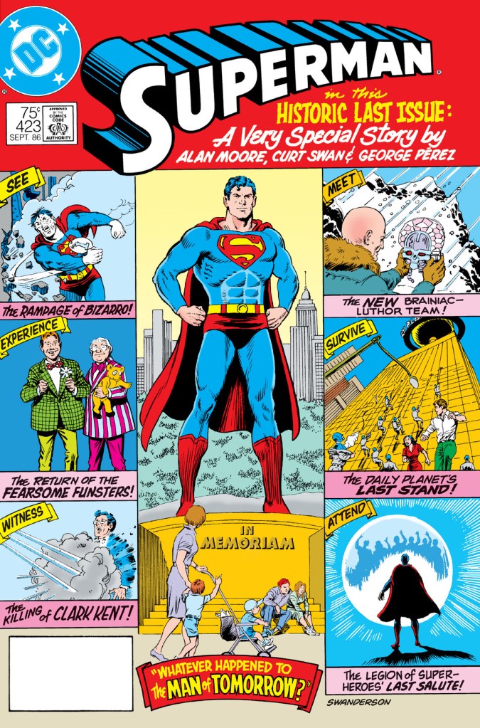 One of the major conventions of the Superman comics during the Silver Age was “Imaginary Stories,” these were “what if?” style scenarios revolving around changing some essential aspect of Superman’s lore and seeing how it plays out. For example, a typical story might be about Superman getting married, having children, being killed by one of his enemies, or vice versa. To wrap up this era of Superman, writer Alan Moore penned a two-point narrative that brings the story of the Man of Steel to a clear finale. It doesn’t necessarily fit with the continuity of what was happening in the Crisis on Infinite Earths event, but it was written because of what Crisis was bringing to the DC Universe.