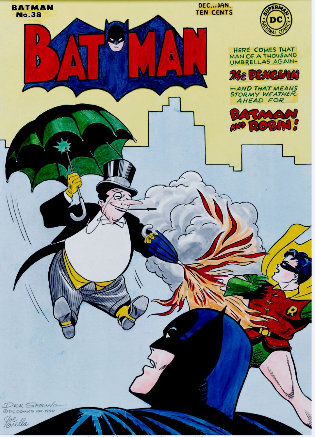 At first, The Penguin used an umbrella gun and was able to roll up stolen paintings and hide them within the device. Next, he got involved with mobsters but turned on them and was dealt with handily by Batman and Robin. A while later, the villain would pop back up running a scam in Mississippi where he would break criminals out of jail only to turn them in for the reward. After that, he was found running a gambling ring in Florida with bird-themed partners, Canary, Buzzard Benny, and (sigh) Jim Crow. After these escapades, The Penguin was brought back to Gotham and started using birds in his crimes. This would solidify how he’d be used by writers for the majority of the Golden Age, but eventually, he’d retroactively have an origin written for him.