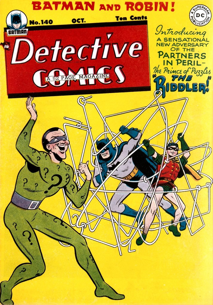 The Riddler was one of the later additions to the Golden Age Batman rogues gallery. He debuted in Detective Comics #140 (October 1948), co-created by Bill Finger and Dick Sprang. Despite his late introduction, he would become part of a core four group of villains alongside The Joker, Catwoman, and The Penguin. Unlike these other characters, The Riddler never received a major reboot to his origins post-Crisis. The Joker had The Killing Joke, Catwoman was rebooted in Batman: Year One, and The Penguin had his origins developed in the 1990s by various creators.