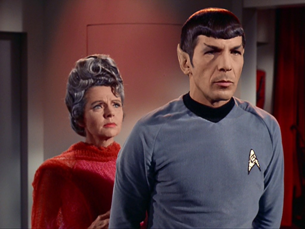 Another focus on Spock introduces us to his father, Sarek (Mark Lenard), and his mother, Amanda (Jane Wyatt). As someone who came along when Star Trek and its lore were well-established, I assumed Sarek was a recurring character, only to discover this was his only appearance in the original series. My first encounter with Sarek was in Star Trek III: The Search for Spock, so it was interesting to go back and see his introduction in the series. The show couldn’t have picked a better actor to act as a foil to Nimoy’s Spock. Lenard perfectly captures the Vulcan stoicism that Nimoy had developed for the species.