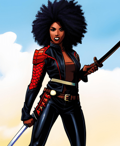 I also used Starforged’s Begin a Session Move and got “Unforeseen aid is on the way or within reach.” I thought that one of the heroes Slingshot encountered in Boss Frankenstein’s Arena would pop back up. A roll on The Adventure Crafter’s characters list gave me Jade Knight, so I knew she would pop up at a moment in the narrative when I needed her help. I look at these additional tools as prompts; in the same sense, someone doing improv asks the audience for a word or suggestion. I have a framework in my head of where I want to take the character, but the details are very vague, so these random seeds of ideas help flesh out the story.