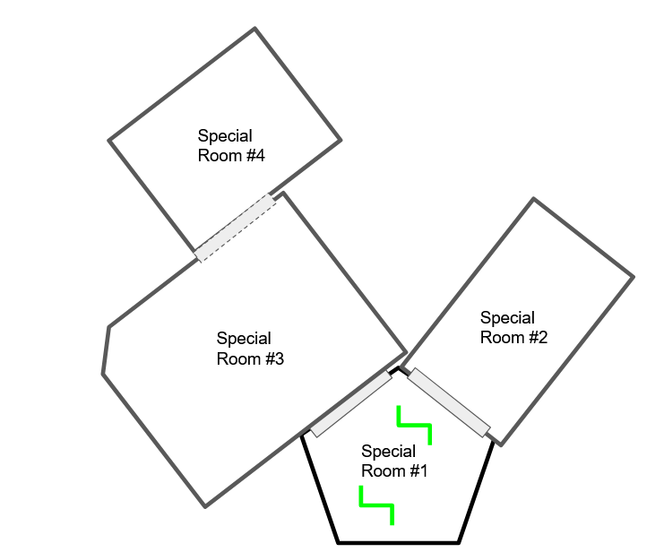 The first room is a special room, an Uncanny Entrance. A chair composed of animal bones appears to have been made for a child; what sort of child remains to be seen. In the corner is a state of what seems to have been the Virgin with her head lopped off. Most dangerous are the cracks in the floor, a green gas crawling its way up from the surface and slithering across the floor.