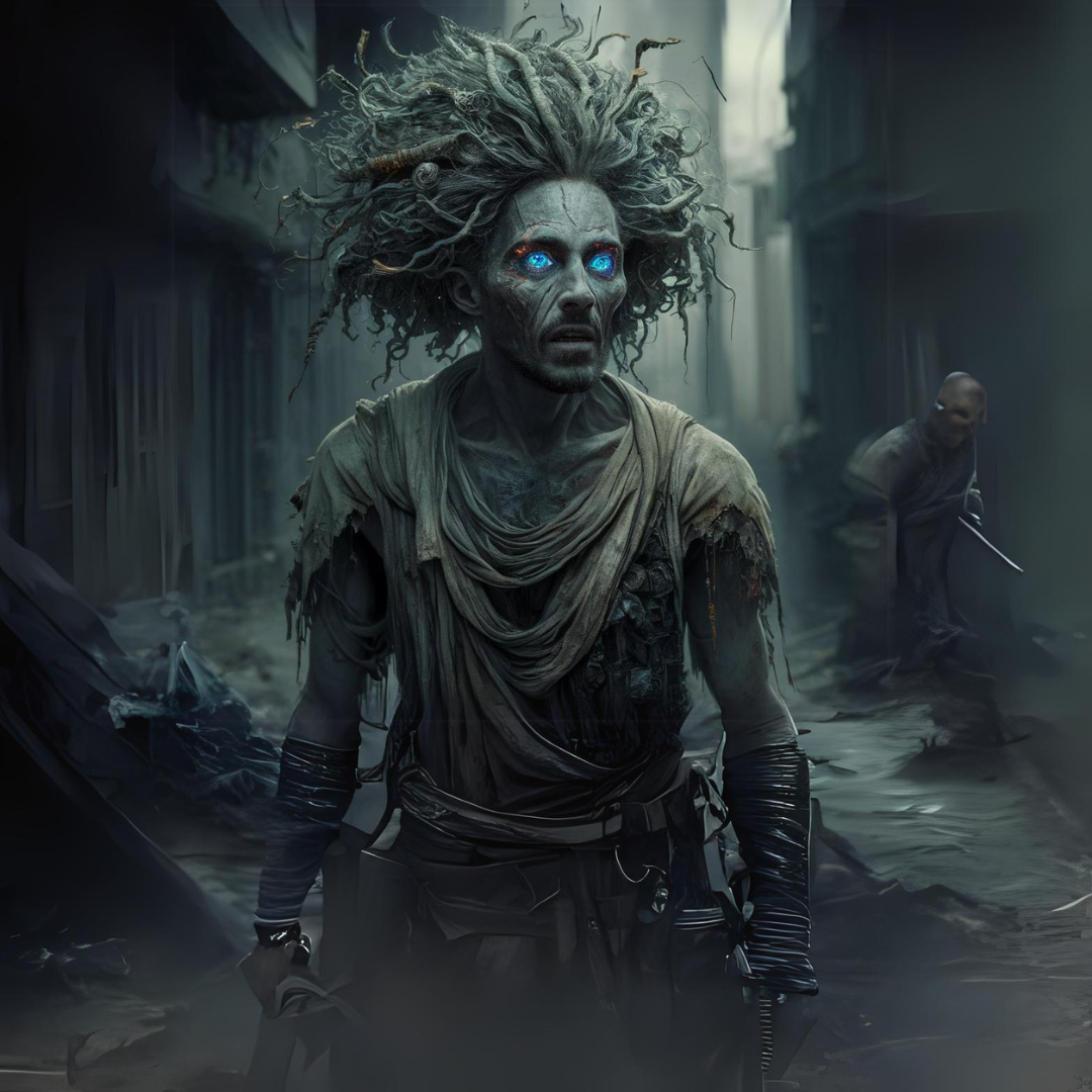 Ducking into an alleyway, Bell comes upon a stomach-wrenching sight. The first thing he sees are the words “Everything is for Free” painted on the wall in blood that runs in the rain. Just a couple meters away, a young person with rabbit-like ear implants is hacking away at the feet of a recently deceased passerby. Once the feet are cut off by the sword Rabbit Ears is wielding, they turn around, showcasing one of the most demented smiles Bell has seen in a while. They hold the Silverglide sneakers in one hand, the latest in high fashion coming out of The Hills. Bell recognized the stare of someone dosed out of their mind on Miura.