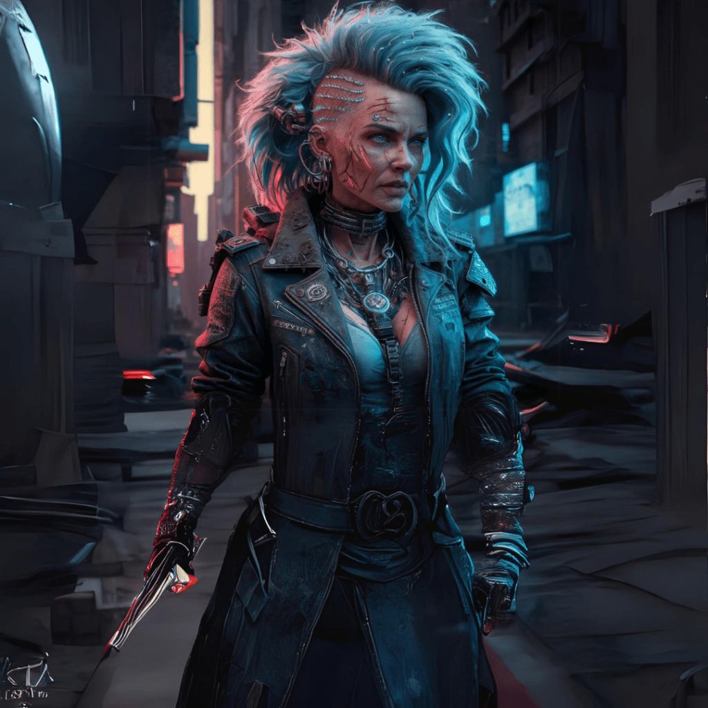 There’s an old timer, Shade, an influencer from back in the day. She was part of Pixel Diva’s initial burst of hype, pushing the singer to the top of the feeds. While Pixel’s star rose, Shade’s faded. She now operates out of a modified RV that she drives around The CY to keep away from the authorities while she streams a bizarre mix of product placement & conspiracy theories. The RV is outfitted with some killer defenses, so Bell will need the help of a hacker who can help him override these systems.