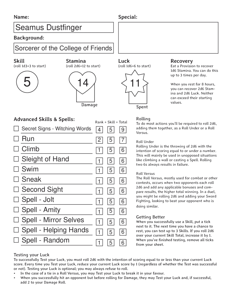 My character was a Sorcerer at the College of Friends, something the game lets you define in detail, as with all its evocative backgrounds. Here’s the story of Seamus Dustfinger: