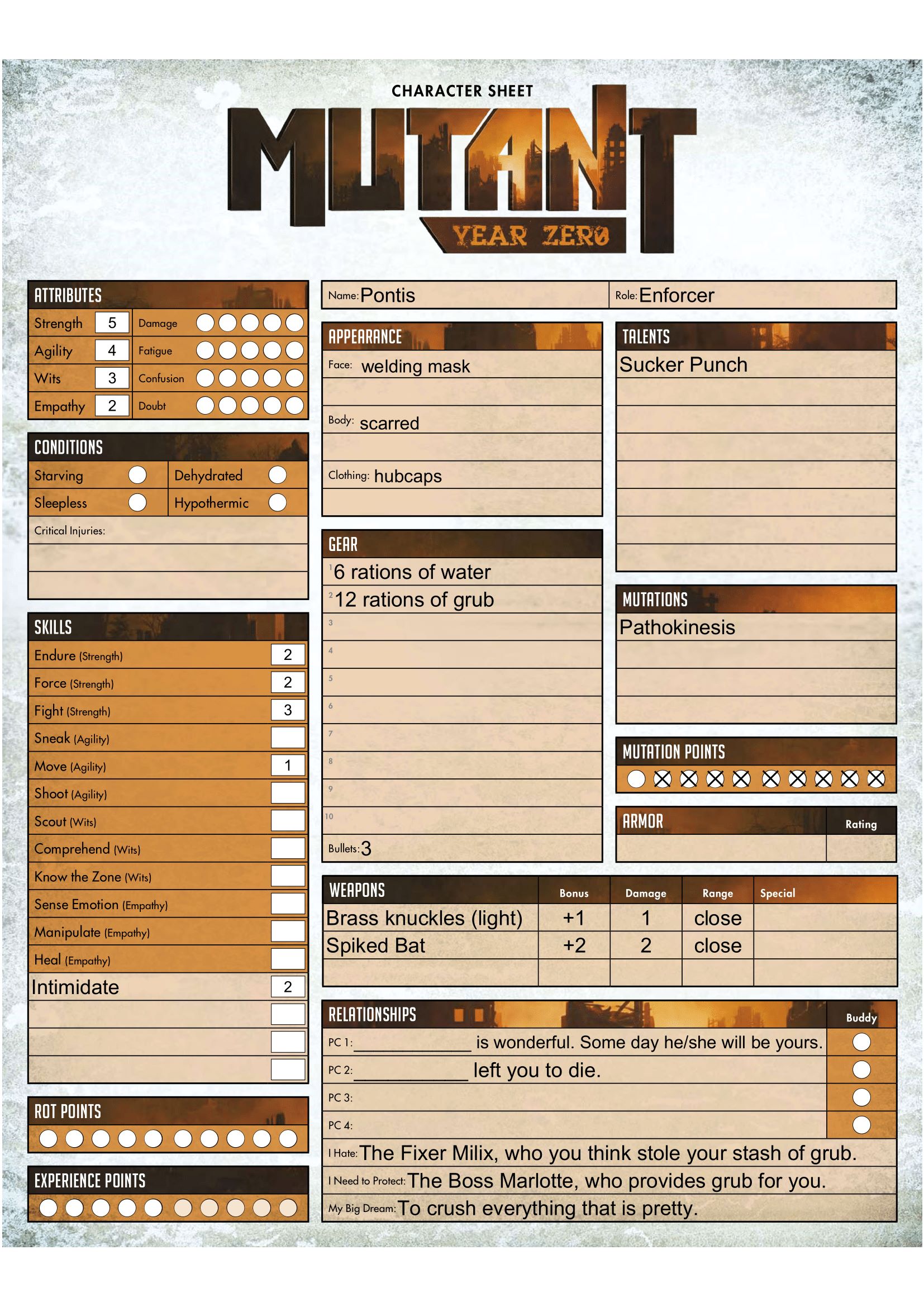 One thought on “31 Days of Character Creation #22 – Mutant Year Zero”