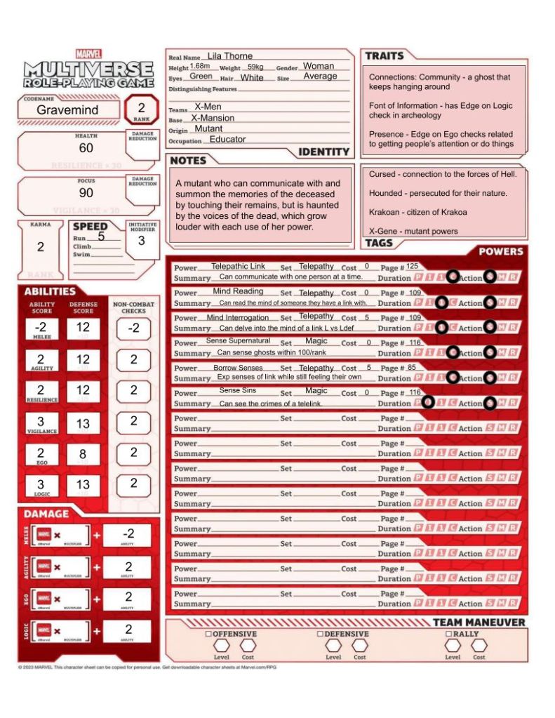 Last year’s deep dive into Chris Claremont’s 16 year Uncanny X-Men run had me interested in making a mutant. I played around with some interesting powers and concepts and came up with Gravemind, aka Lila Thorne.