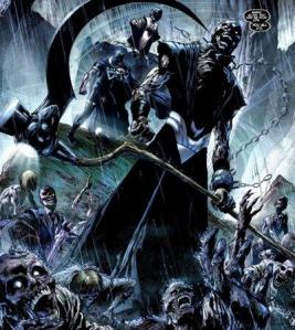 While the Corps worked to hunt down Sinestro’s soldiers still out there, using their rings to torture innocent beings, Hal Jordan encountered the Blue Lanterns and found his could use his green ring in conjunction with a blue one. He also ended up in Sector 666, where a red ring of rage overtook him for a little while. Sinestro was being transferred when his Corps arrived to liberate him and all hell broke loose. The War of Light began, all the various colors battling each other. As they were distracted, an old villain named Black Hand brought the scourge of the Black Rings to Earth. These rings were keyed only to the dead, and allowed hordes of dead heroes and villains to be resurrected as dark versions of themselves. At the time characters like Aquaman, Martian Manhunter, and Hawkman were all dead and came back as monstrous Black Lanterns.