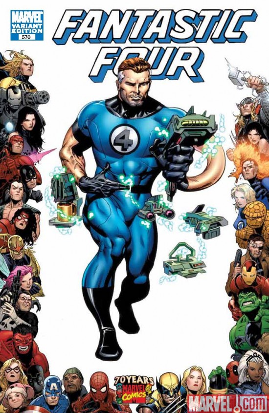 In aftermath of a major alien invasion, Reed met with Tony Stark, Professor Charles Xavier, Doctor Strange, Namor, and Black Bolt to form the Illuminati. Their goal was to head off catastrophes on Earth before the general public ever became aware of them. This would lead to their journeying to the homeworld of the aggressive Skrull race, informing that species that Earth was off limits to them. Reed and Sue reunited and once again he found himself in the presence of Galactus. This time Galactus was vulnerable and Reed had a chance to kill him, instead he showed humanity and spared the being’s life. As a result, Reed was captured and put on trial by the species whose worlds were devoured by the world eater. Reed won with the defense that Galactus was a force of nature, and an essential piece of the evolution of the universe. Back home, Sue was having complications with her second pregnancy and Reed tried to do what ever he could with his knowledge, but sadly the child was stillborn. Reed also learned his father had been living his life out of a parallel world and had become somewhat of a villain.
