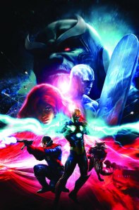 A couple years later, the teenaged superhero team the New Warriors were battling villains in a small Connecticut town when the villain Nitro (a living nuclear bomb) went off killing hundreds. This forced Superhero Registration legislation through in Washington which was backed by Iron Man, Tony Stark. Reed along with the rest of his Illuminati cohorts agree that it is time for the age of secret identities to end for the safety of humanity, while other heroes, including Sue, disagree. This leads to the violent Civil War, turning hero against hero. Reed volunteers to build a prison for unregistered metahumans in the strange Negative Zone, an act which turns even more heroes against him. He later defends his position, citing Isaac Newton’s fictional psychohistory theory: that using a mix of math, science, and sociology one can predict the outcome and severity of global disasters. The heroes end up split, many signing up under the law but many going underground. Reed meets with the Illuminati again at a later date where Black Bolt reveals he is not who he appears, but is a shape shifting Skrull alien that has replaced the hero. This kicks off the Secret Invasion, wherein it is revealed many of Earth’s heroes have been replaced with Skrull sleeper agents.